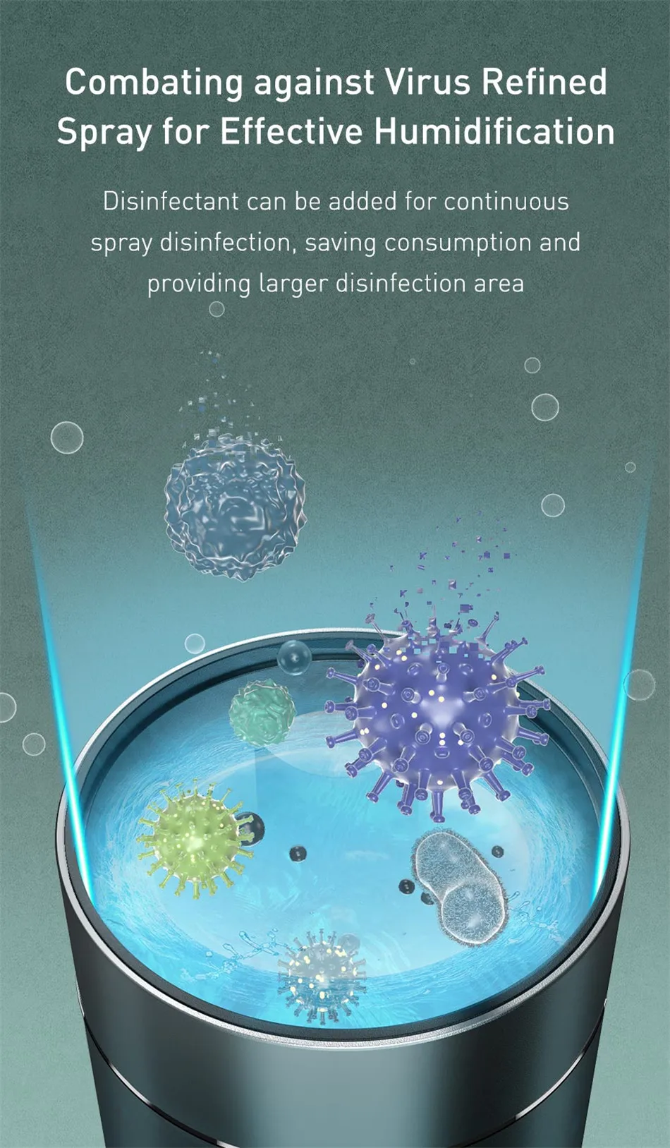 Aroma diffuser and humidification 2-in-1 design: Large volume design, can be added with aroma/sterilization essential oil thus keeping the air moist while relieving pressure after atomization