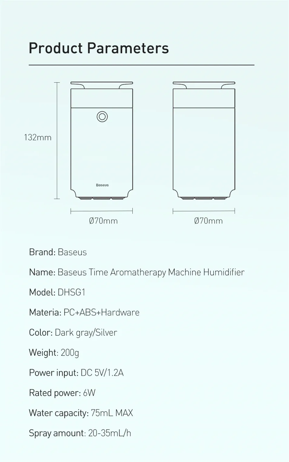 BASEUS 75mL Time Aromatherapy Machine Humidifier – DHSG-0G