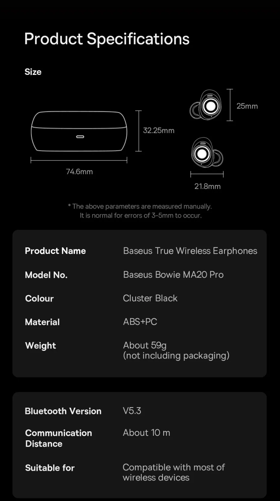 Baseus Bowie MA20 True Wireless Earphones With Active Noise Cancellation & Upto 38 Hours Playtime