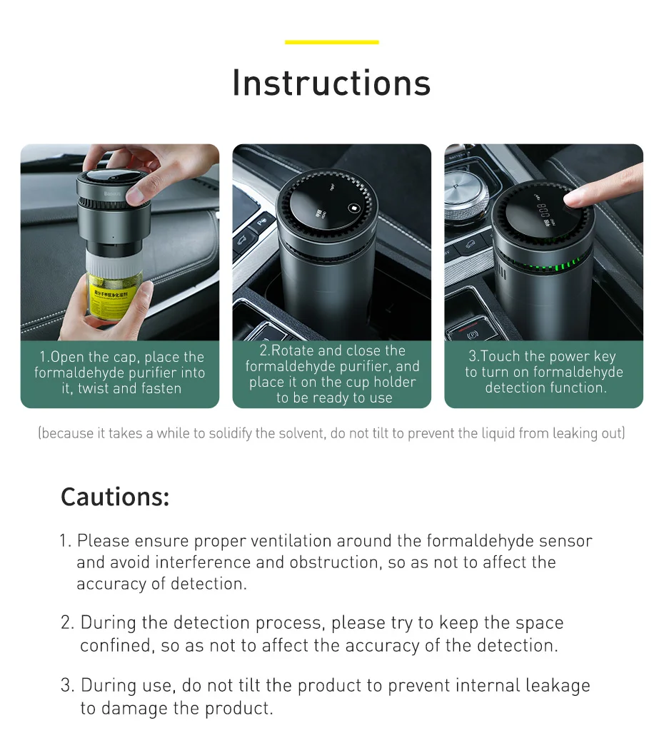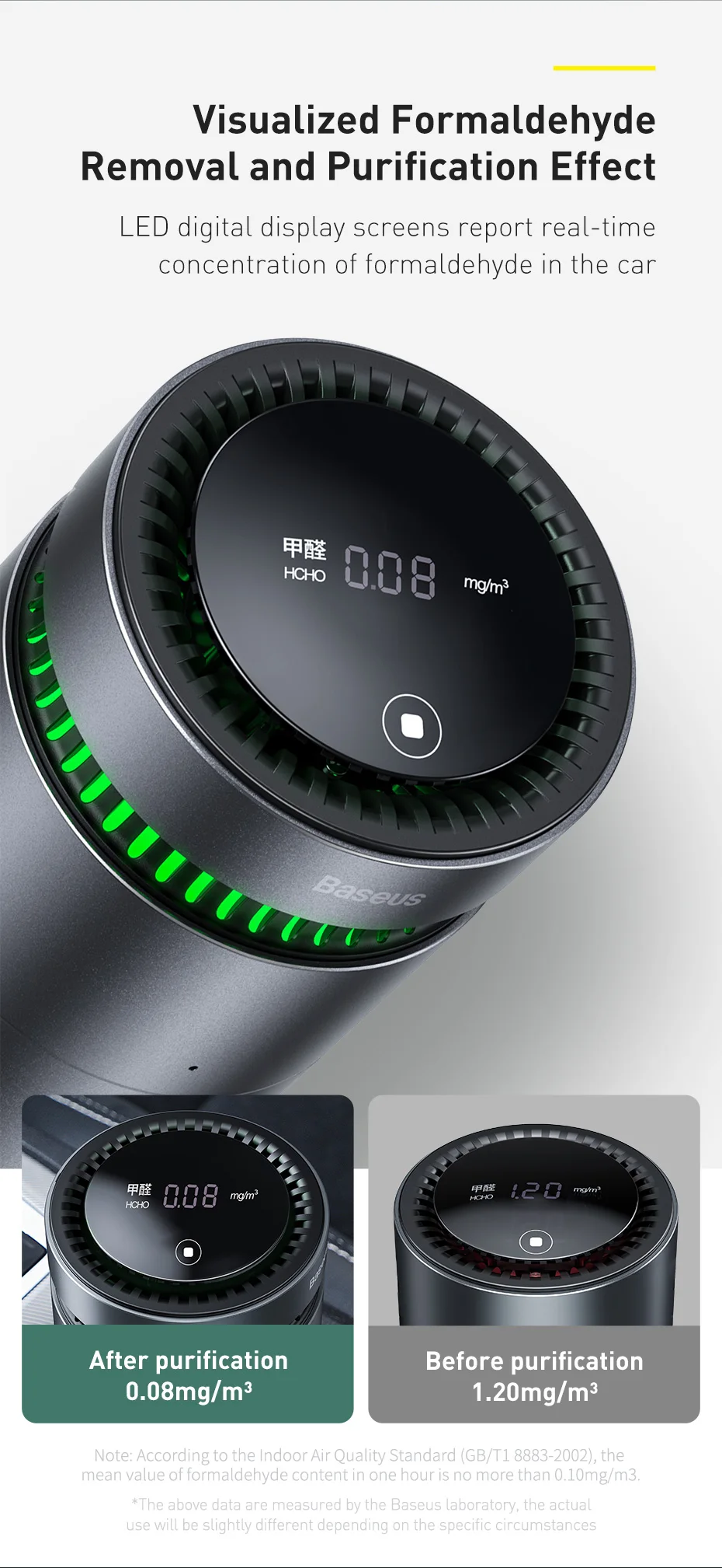 5. Visual LED display, real-time report of the formaldehyde concentration in the car, built-in high-precision probe, and detection integration.