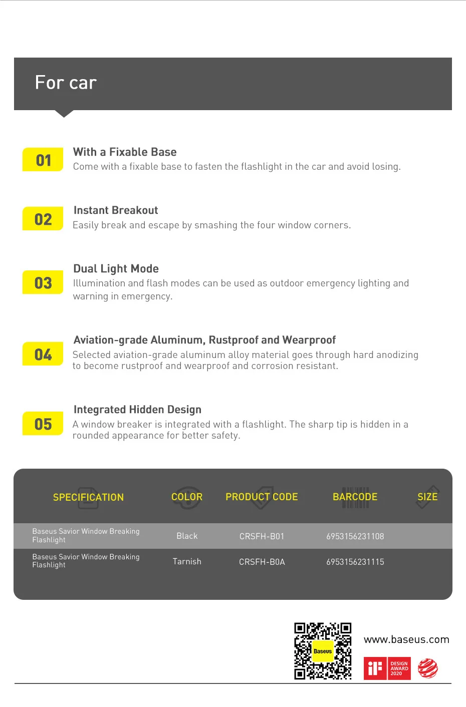 Fine sand plating and anodizing process to prevent rust. wear and corrosion, llluminate the way for you rain or shine due to lP53 waterproof rating