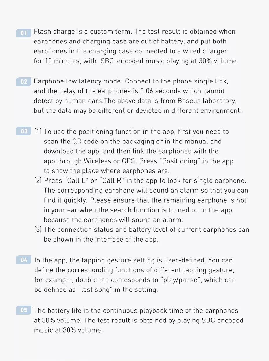 Record the location of earphones disconnected last time, call and search earphones, name your earphones and more functions in Baseus app.